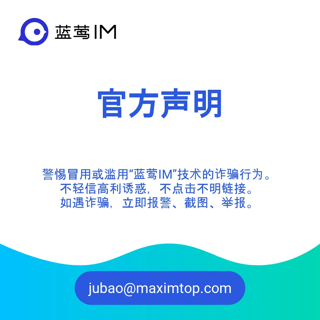 近期,我们关注到网络上有关于“蓝莺IM”平台涉嫌诈骗的相关内容传播,给广大用户造成了严重误解,极大损害了我们的品牌形象。北京美信拓扑科技有限公司作为“蓝莺IM”即时通讯云服务的提供方,特此发布本声明,澄清事实并提醒广大用户加强防范: